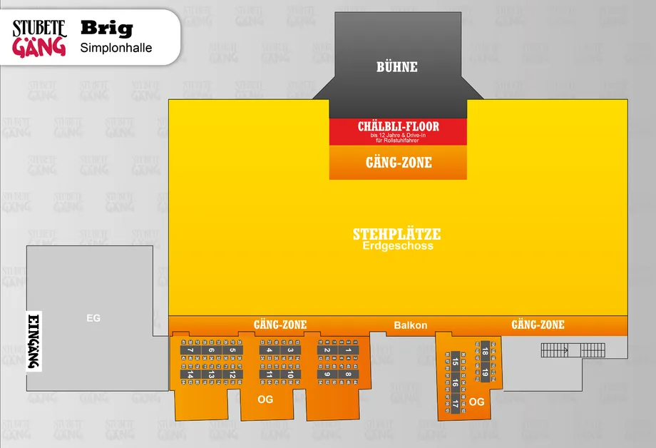 Gönne dir und deinen Freunden, Familie, Mitarbeitenden uvm. einen unvergesslichen Abend. Wenn du die Kategorie Top-Plätze kaufst, ist das die einzige Möglichkeit auf dieser Tour die Band persönlich zu treffen. Du geniesst auch einen währschaften Znacht mit einem Wurst- und Käseplättli und erlebst das Konzert an einem Top-Steh-Platz vor der Bühne oder Balkon (orange Zone). In diesem Paket ist ausserdem noch ein Stubete Gäng Geschenk dabei.