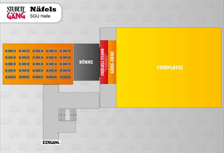 Nach der Türöffnung um 18 Uhr könnt ihr euch durch das Stubete Gäng Getränke- und Foodangebot schlemmen (es gibt z.B. die Monika Bündner Gerstensuppe, die Ursula Bratwurst, das Richi Magenbrot und das eigene Stubete Gäng Bier und der bei den weiblichen Fans beliebte Stubete Gäng Prosecco).